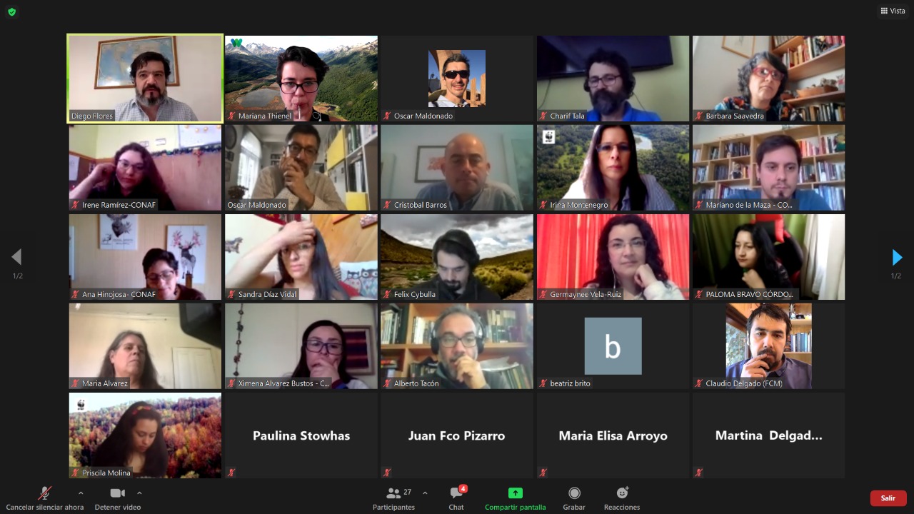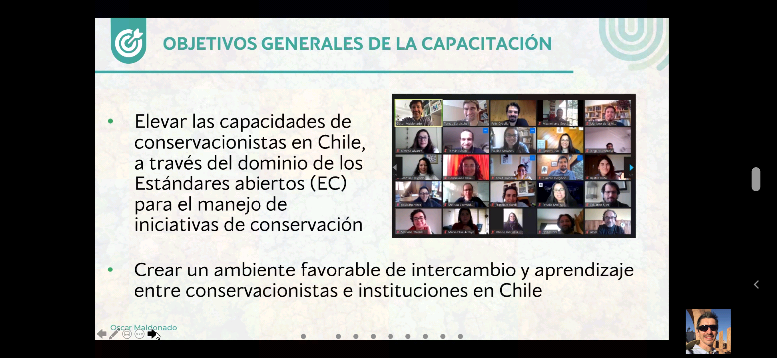 Fueron 22 funcionarios/as y profesionales de instituciones públicas y privadas, de la academia y de organizaciones de conservación, quienes se capacitaron por medio de este Programa avanzado, cuyo objetivo fue elevar las capacidades técnicas para la planificación de la conservación en Chile, a través del dominio de los Estándares Abiertos en el manejo de iniciativas de conservación y crear un ambiente favorable de intercambio y aprendizaje entre conservacionistas y funcionarios/as públicos en Chile. El curso fue facilitado por dos coaches de la Conservation Coaches Network (CCNet), Félix Cybulla y Óscar Maldonado, quienes tienen más de 20 años de experiencia en la planificación y gestión de proyectos de conservación, y planificaron el aprendizaje en 12 módulos semanales de un total de 72 horas, más un taller presencial que, se espera, pueda realizarse más adelante cuando las condiciones sanitarias lo permitan.